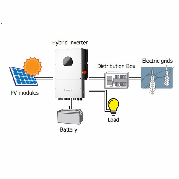 يمكن ربط الشبكة بالطاقة الشمسية الاحتياطية عن طريق إعادة التغذية إلى الشبكة وتوفير الطاقة للحمل وشحن البطارية.
