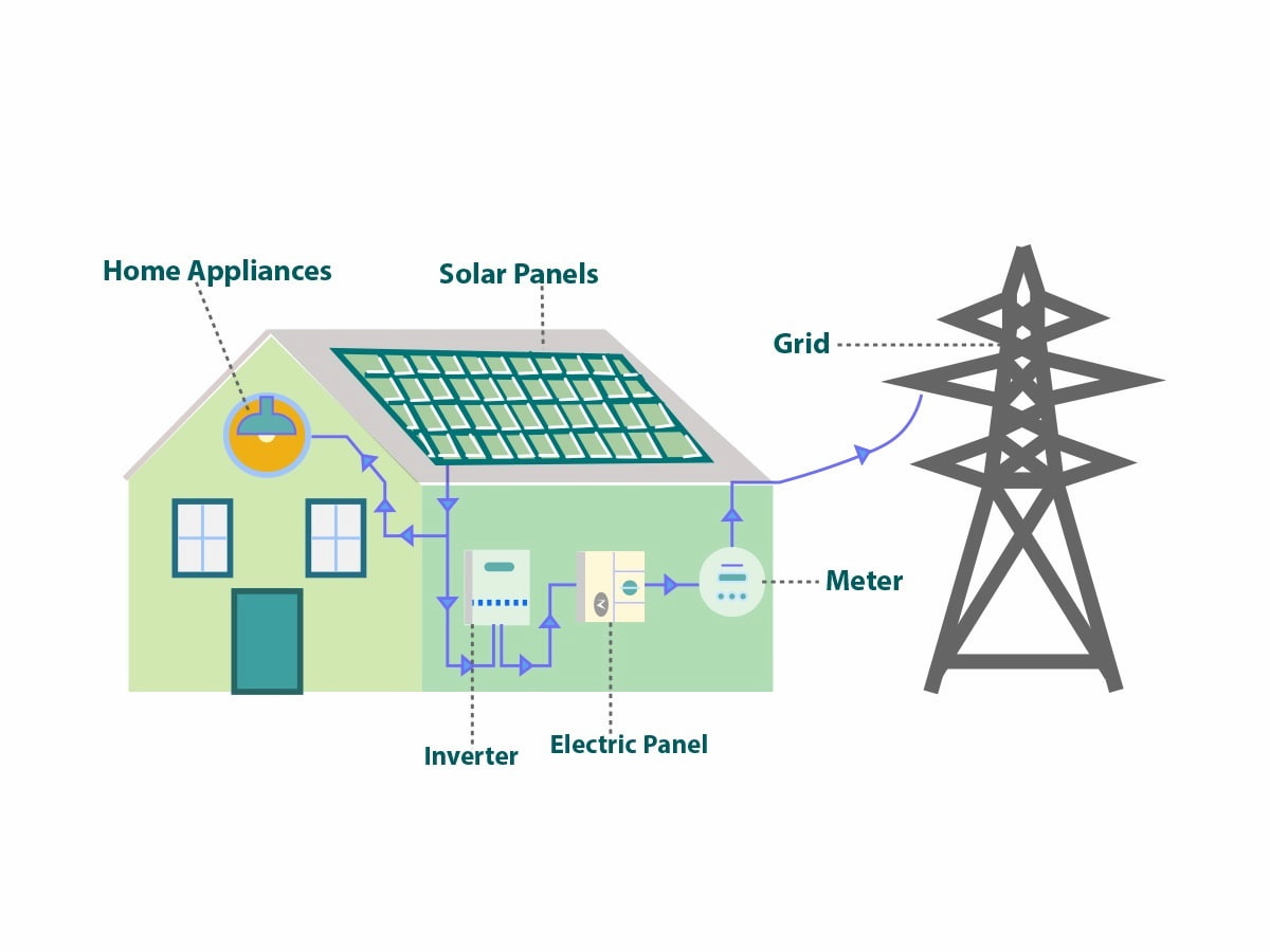 يمكن تغذية الطاقة الكهروضوئية المرتبطة بالشبكة فقط إلى الشبكة.