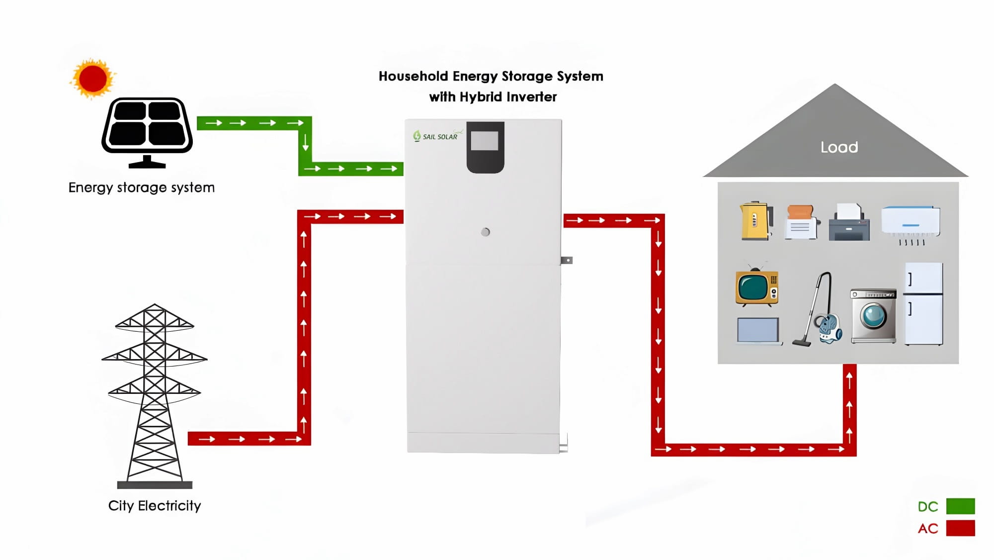 All-in-oneيعمل نظام تخزين الطاقة الشمسية SAIL SOLAR متعدد الاستخدامات للاستخدام المنزلي بتردد 50 هرتز، ويتراوح نطاق رطوبة الهواء بين 5% و85%، مما يجعله مناسبًا لمختلف الظروف المناخية. يستخدم النظام تقنية الشحن الشمسي MPPT بجهد يتراوح بين 120 و450 فولت لزيادة التقاط الطاقة الشمسية إلى أقصى حد. ويتمتع بعمر افتراضي يزيد عن 10 سنوات عند عمق تفريغ 80% (DOD)، مما يضمن موثوقية طويلة الأمد.