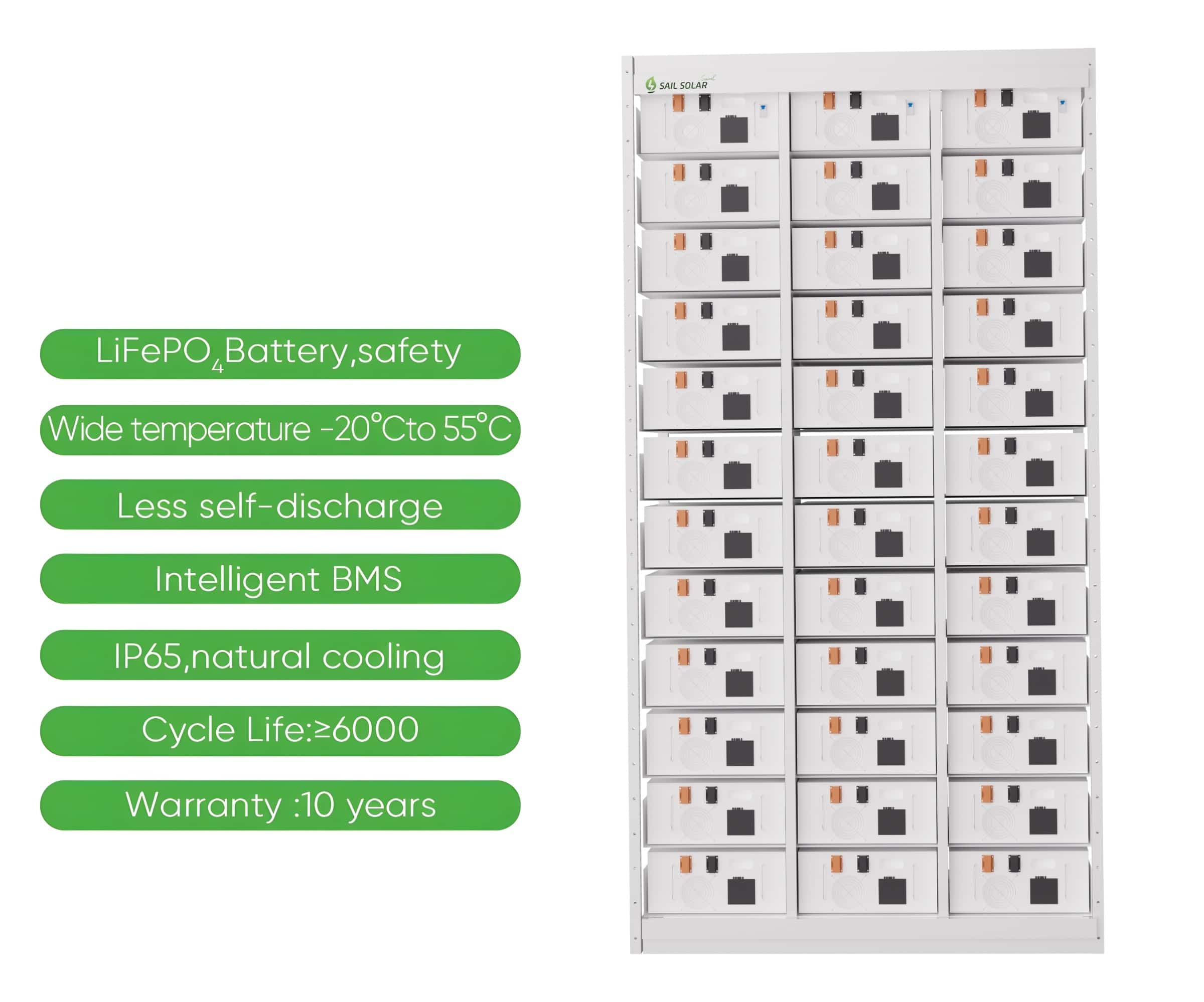 نظام تخزين الطاقة التجارية Sail Solar High Voltage Rack BESS 200 كيلو وات في الساعة بطارية LiFePO4