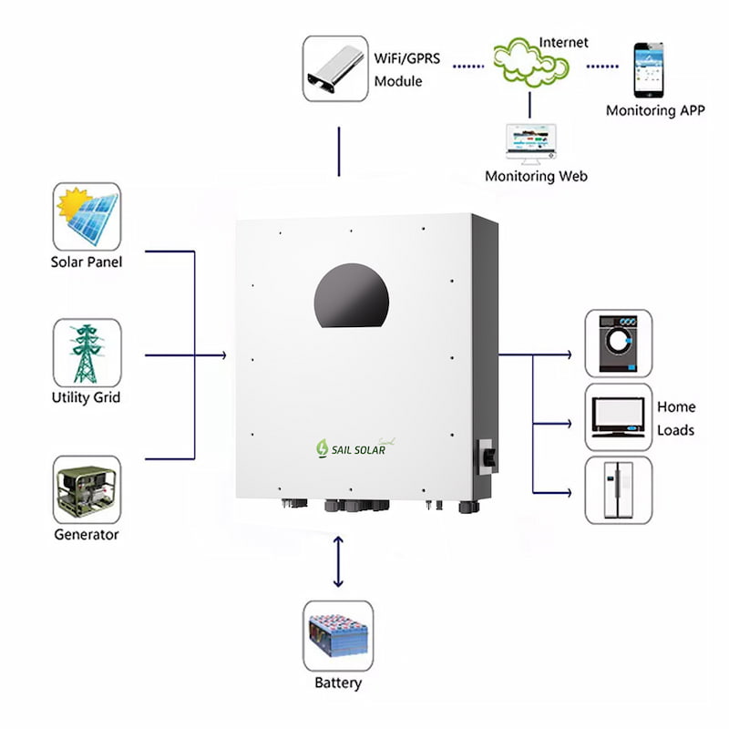 تتيح وحدة الواي فاي الاتصال اللاسلكي بين عاكسات الطاقة الشمسية الهجينة ومنصات المراقبة. عند دمج وحدة الواي فاي مع التطبيق، المتوفر لأجهزة iOS وأندرويد، يحصل المستخدمون على تجربة مراقبة وتحكم كاملة عن بُعد للعاكسات. تُحفظ جميع سجلات البيانات والمعلمات في iCloud. تُعد تطبيقات مراقبة الطاقة الشمسية وسيلة رائعة لتحقيق ذلك، حيث يمكنك مراقبة كمية الطاقة التي تنتجها ألواحك الشمسية وتوزيعها بكفاءة أكبر عند الحاجة.