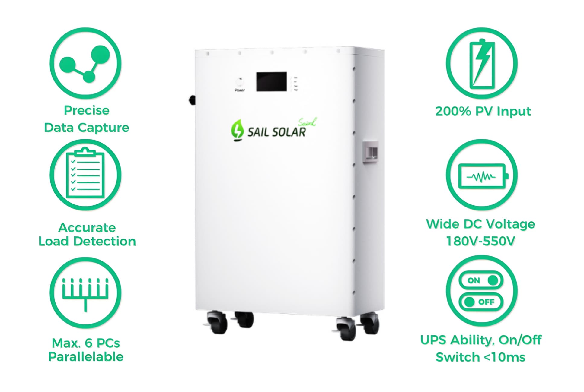 صُممت بطارية الليثيوم المتنقلة Sail Solar لتوفير أقصى قدر من المرونة والأداء المتميز، مما يضمن توافقها مع معظم العلامات التجارية الرائدة في مجال العاكسات في السوق. سواء كنت تُحدّث نظامك الشمسي الحالي أو تُنشئ نظامًا جديدًا، توفر هذه البطارية بسعة 304 أمبير/ساعة تكاملاً سلسًا وتخزينًا موثوقًا للطاقة، مُصممًا خصيصًا لتلبية احتياجاتك من الطاقة.